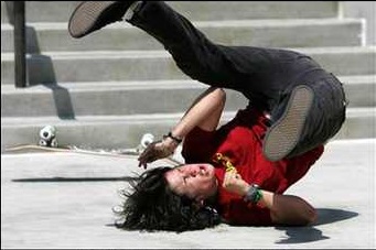 So today, in order to be a good and attentive father, I went to the skate park with my über cool and accomplished skater son to humiliate and injure myself before a live studio audience.