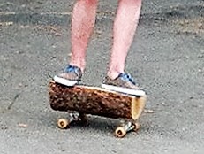 Retrieving my faithful steed and hearing a few snickers from the philistine mommies on the bench, I further impressed my miniature compatriots with a quick roll up the quarter pipe, a 180 and a sudden horizontal quarter flip in which the board suddenly unleashed a burst of nitrous from some hidden tank (I swear I heard a hiss like a huge air vessel was getting ready for a punkin’ chunkin’ shot) and rocketed from under my feet, through the entire skate park and made a hole in one on the frisbee golf course number 7.